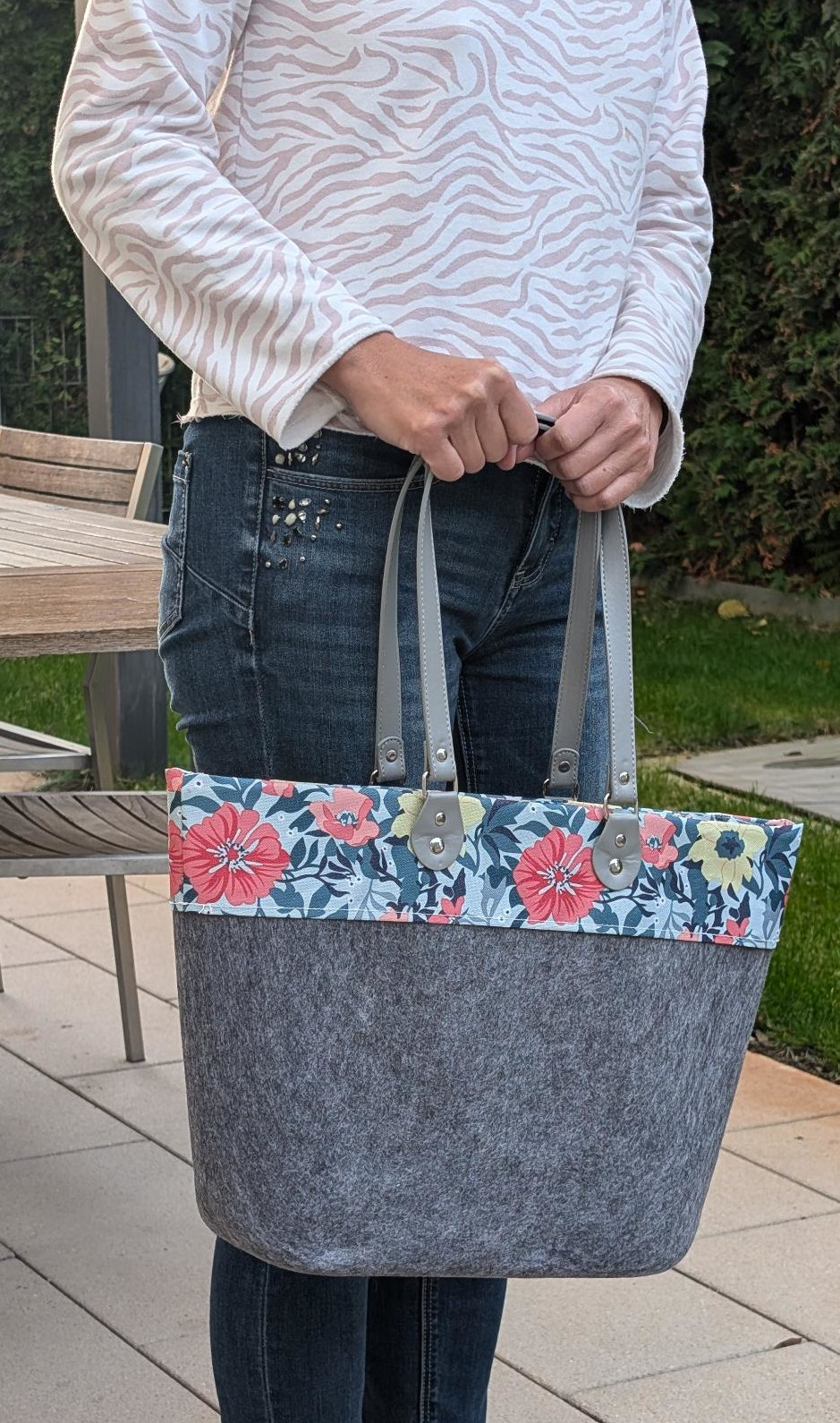 Unser elegante Filzshopper ist Dein Begleiter im Alltag. Er kann als Schulter- oder Tragetasche verwendet werden.